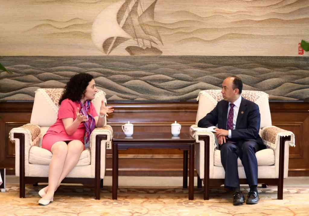 王宏伟(右)会见雅娜·格沃艮