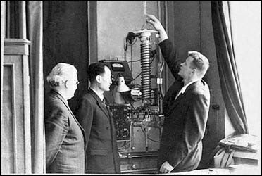 在上世纪一切向苏联老大哥学习的年代,惟有固体内耗领域是苏联老大哥要向中国、向葛先生学习的。图为1956年3月访苏期间,葛庭燧在莫斯科钢铁学院参观芬克尔斯坦实验室的葛氏扭摆内耗仪装置。 全世界各种类型的内耗仪均源于“葛氏扭摆”原理。1947年在美国芝加哥大学金属研究所工作期间,葛庭燧创造性地发明了金属内耗测量装置(葛氏扭摆),被国际科学界誉为战后最天才的发明。