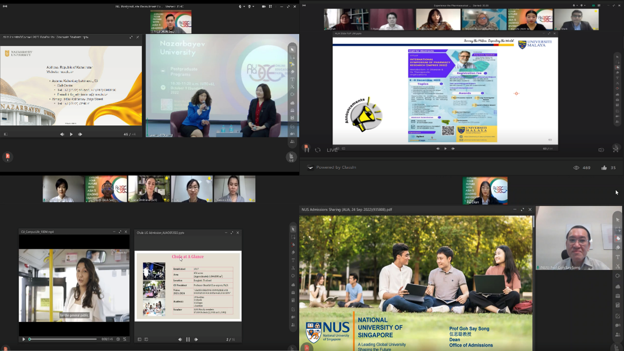 亚洲大学联盟2022年教育展在进行了42小时35场宣讲后圆满落下帷幕。本届教育展通过联合15所亚洲各国一流大学的力量,为来自五大洲数十个国家的观众提供了一次集中了解亚洲高等教育的机会。亚洲大学联盟秘书长张传杰表示,希望通过此次教育展,让亚洲一流学府走进全球更多学子的视野,为亚洲高校拓展生源渠道、聚集世界优秀人才提供舞台。