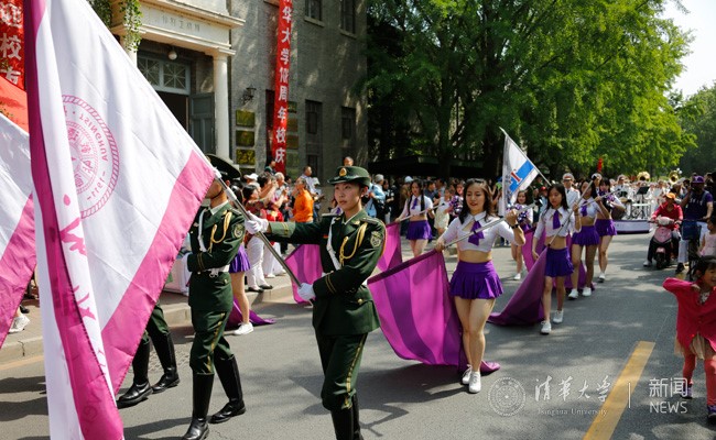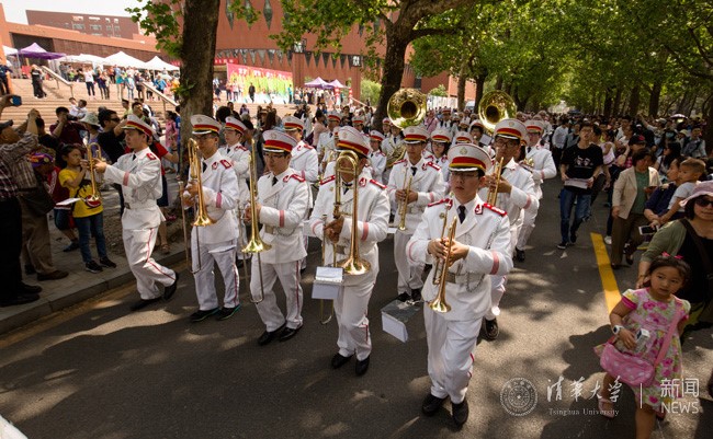 本次校庆游园活动由学生艺术团军乐队一队和二队、国标队、舞蹈队,学生体育代表队啦啦操队,学生国旗仪仗队联袂呈现。两支游园队伍分别从艺术博物馆和东大操场出发,途经中央主楼、新清华学堂广场、二校门、日晷、老馆、北馆等清华标志性建筑物驻足演出,最后汇合于大礼堂,吸引了众多返校校友、在校师生以及游客随行观演。