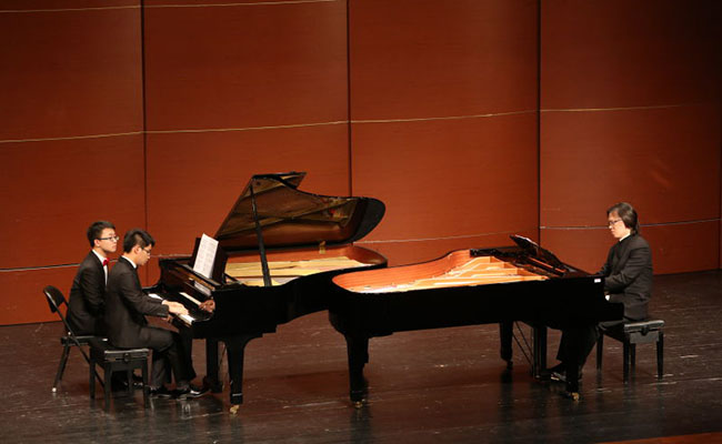 键盘队队员与吴纯教授合奏 《滑稽的引子与回旋曲》。路健 摄