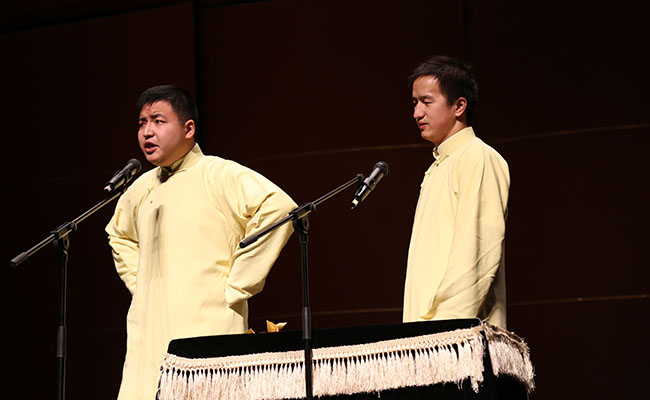 曲艺队队员表演相声《动画漫谈》。蒋乐源