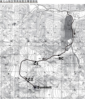 7月1日,队伍开始进山建立本营BC,随后陆续出现发烧、呕吐等严重高反现象。大家调整心态、主动适应,在队友的团结互助中,克服困难进行了一系列的运输,至7月5日完成所有高山营地C1、C2的建立。为了抓住好天气的机会,连续运输、建营地的A组6名队员鼓足精神,6日一早出发冲顶,顺利登顶后下撤。随后,B组队员上升至高山营地C1、C2,并于8日冲顶,但恶劣的风雪天气使得B组队员只能到达顶峰脚下,因路绳完全被大雪掩埋而最终放弃冲顶。9日,A组队员上升至C1营地接应下撤的B组队员,并一同回到本营出山。