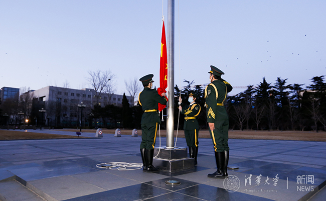 清华新闻网2月17日电 2月17日是清华开课第一天,新学期以一场特殊的升旗仪式拉开序幕。早上7时,晨光熹微,国歌庄严,鲜艳的五星红旗冉冉升起。虽然现场只有3位在校同学承担升旗工作,但是身处各地的清华师生心在一起。特殊时期的国旗更加鲜艳,凝聚着清华师生的力量,清华加油,中国加油!