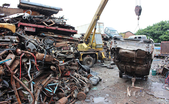 除了政府部门,团队对企业、社区、工厂也展开了调研。我们发现多数居民对垃圾的分类方法和回收方式了解较少,且垃圾分类回收程度较低。虽然我国一直在推动垃圾分类,却没有取得满意的效果。团队在璧山报废汽车回收拆解站(又称“供销社”)进行调研时,发现多数废旧资源的资源性不足,当回收利用时其价值往往被降质使用。缺乏有效的回收对接单位、工厂无法保证利润也是旧物回收企业面临的难题。这些难题无法解决,废旧资源便只能堆积到当地进行焚烧或填埋。