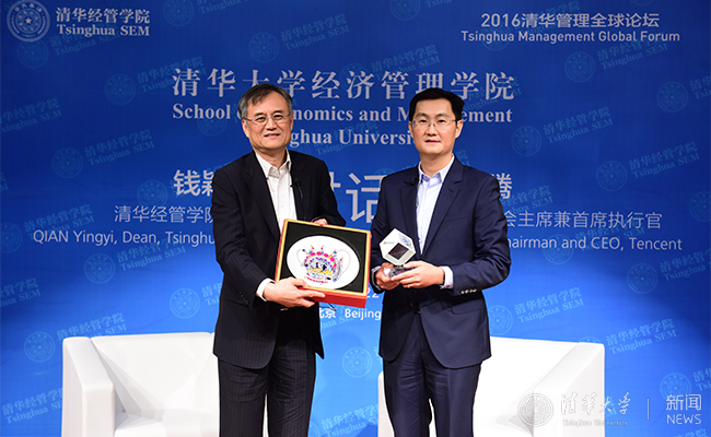 钱颖一在开场时首先介绍了清华管理全球论坛的背景以及历届嘉宾。当谈到此次论坛嘉宾马化腾先生时,钱颖一院长说,“可能没有哪一位来过的企业家像你这样,我们在座的几乎所有人都在使用你的公司的产品。”作为一名从事教育事业的经济学家,钱颖一教授并没有直接就腾讯的科技发展发问,而是从马化腾的个人成长经历聊起,希望为现场师生展现马化腾在每个重要抉择背后的动因和思考。