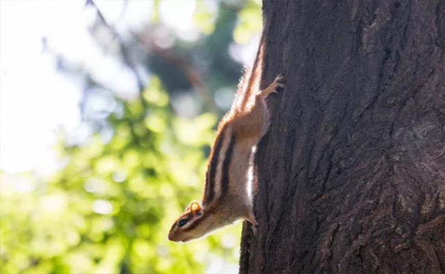 松鼠通常一胎生三四个。小松鼠的毛是灰褐色的,过了冬就换毛,新换的毛比脱落的毛颜色深些。它们用爪子和牙齿梳理全身的毛,身上总是光光溜溜、干干净净的。
