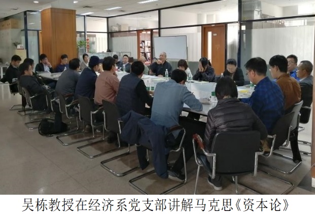 1.理论学习悟初心政治上的成熟源于思想和理论上的坚定。为了真切领悟我们党的初心,支部结合经济系海归教师多的特点,从学习上狠下功夫,组织学习《资本论》、《共产党宣言》等马克思主义原著,使理论学习走深走心走实,激发了学习的内在动力,让大家真正体会到了“学有所获,思有所用”,实现了从“要我学”向“我要学”的转变。理论学习成为了前进的动力,从而得以不断加强。