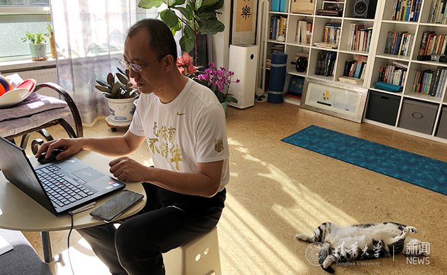 为了准备线上“首秀”,他还特意穿上了“无体育 不清华”的T恤,很多同学在屏幕前看到熟悉的服装都纷纷大呼:“好想回到校园里‘撸铁’!”