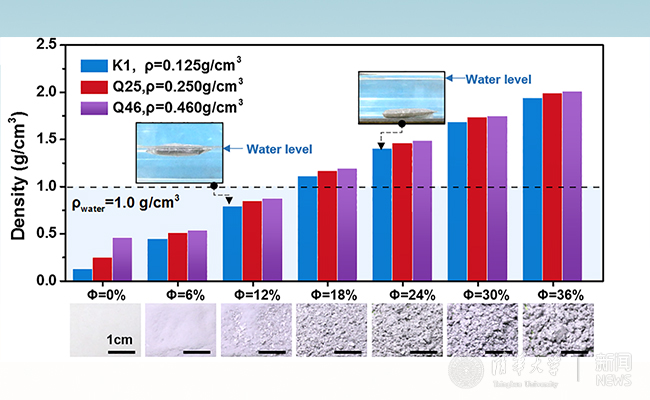 图3. 基于液态金属-中空玻璃微珠制成的轻量化复合材料及对应密度