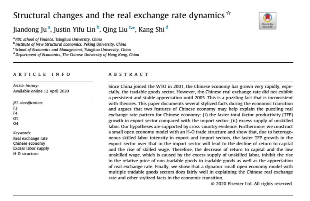 金融学院鞠建东教授合作发文论述结构性变化对发展中国家实际汇率动态的贡献