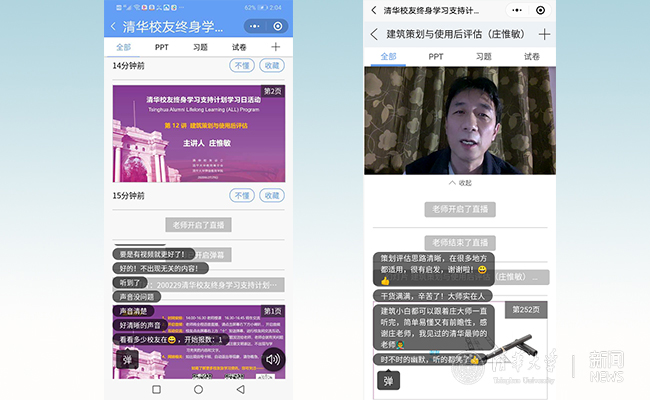在这个全民战“疫”的特殊时期,清华校友总会和继续教育学院积极应对、提前部署,广泛调动校内外线上直播教学资源,充分发挥学校老师通过网络平台进行直播的实践和优势,决定如期开展“清华校友终身学习支持计划”校友学习日活动。为确保校友学习日首次在线学习的顺利进行,清华校友总会、继续教育学院联动雨课堂平台及多名助教老师,与主讲老师做了多轮测试,在有限的条件和要求下不断优化直播方案。