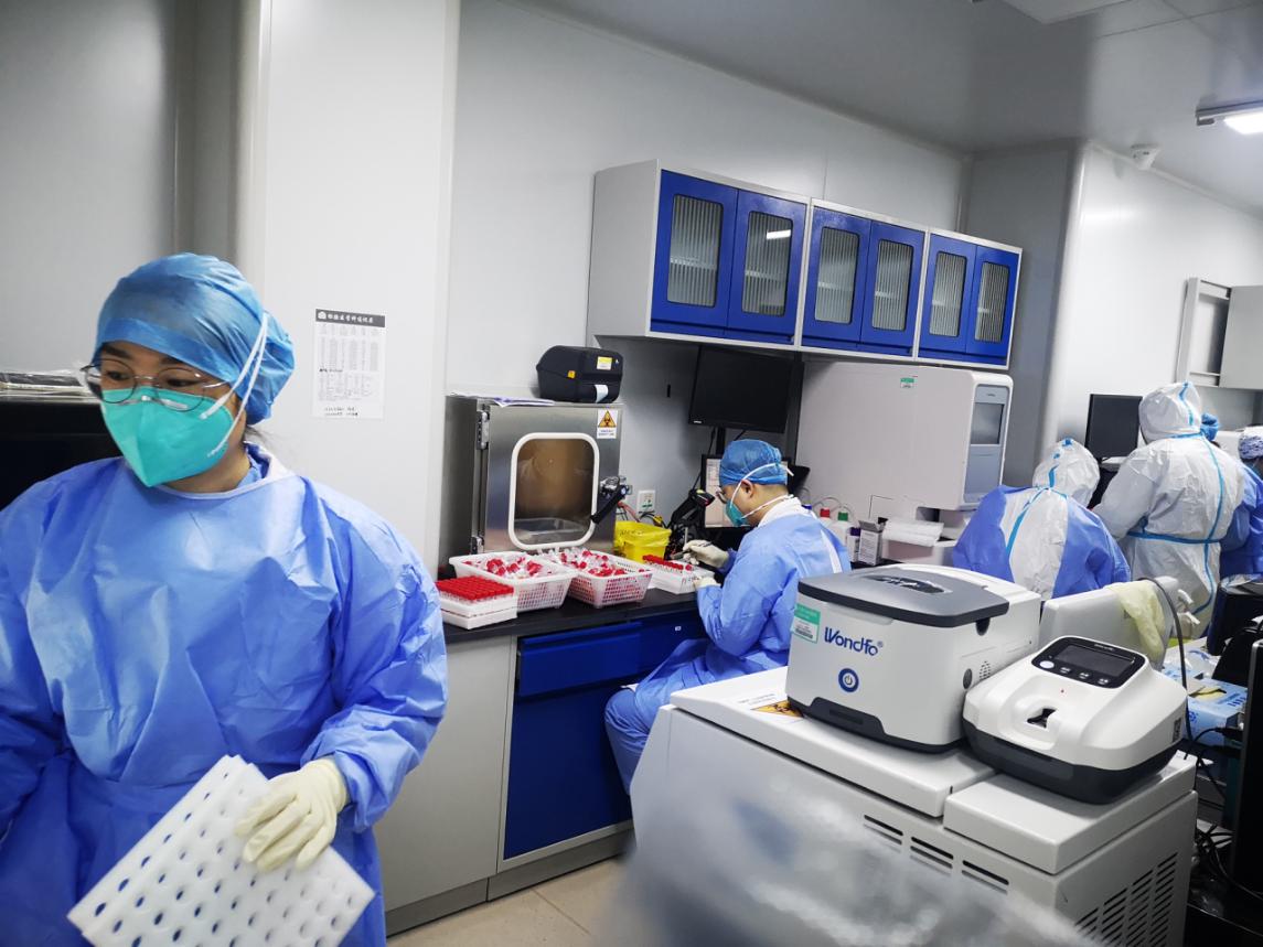 新冠核酸筛查一直是抗击新冠肺炎疫情的“刚需”,本土确诊病例带来的是高通量的样本量,保证应检尽检和员工筛查的同时,清华长庚同时承担起昌平区重点隔离点的样本检测任务,高峰样本量达到了每天3000余管。检验医学科科室全员取消休假,科主任赵秀英、技术副主任李润青带头,进入了7*24小时白加黑的战斗模式。根据排班,检验同仁常常在结束中央实验室的门诊住院检验任务后,继续奋战在发热门诊楼实验室。