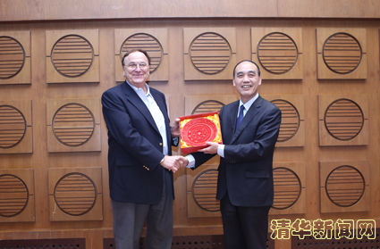 图为袁驷向萨文迪赠送演讲纪念品。记者 智斐