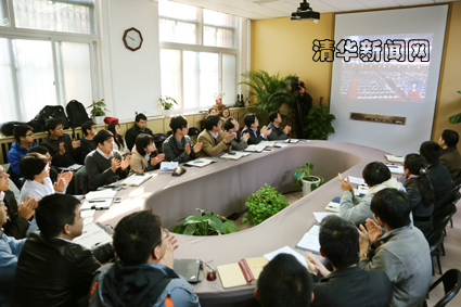 图为校团委大会议室观看现场。 研通社记者 王皓冉