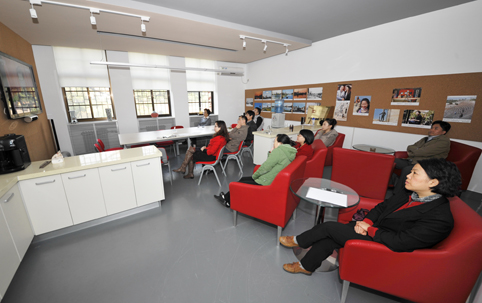 工字厅东厅校领导观看十八大开幕。