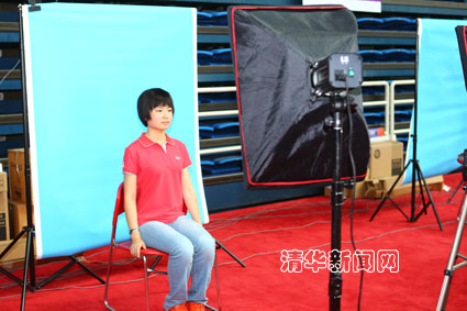 图为综合体育馆内新生照相办理学生证。记者 智斐