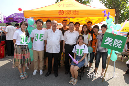 图为校党委书记胡和平、副校长张凤昌与美术学院迎新工作师生和报到新生合影留念。记者 郭海军