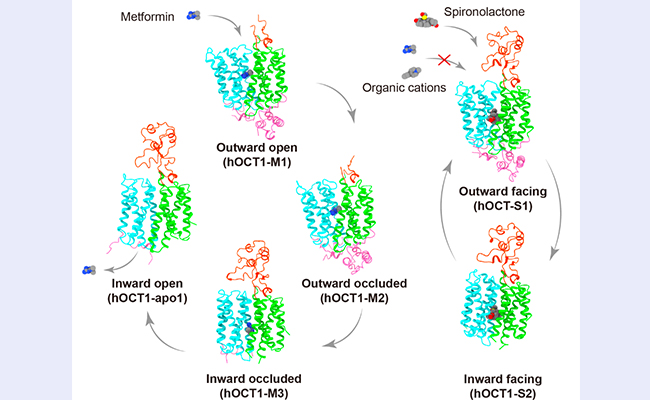 2024.03药学院刘翔宇、陈立功团队合作揭示二甲双胍转运蛋白OCT1的转运和抑制分子机制