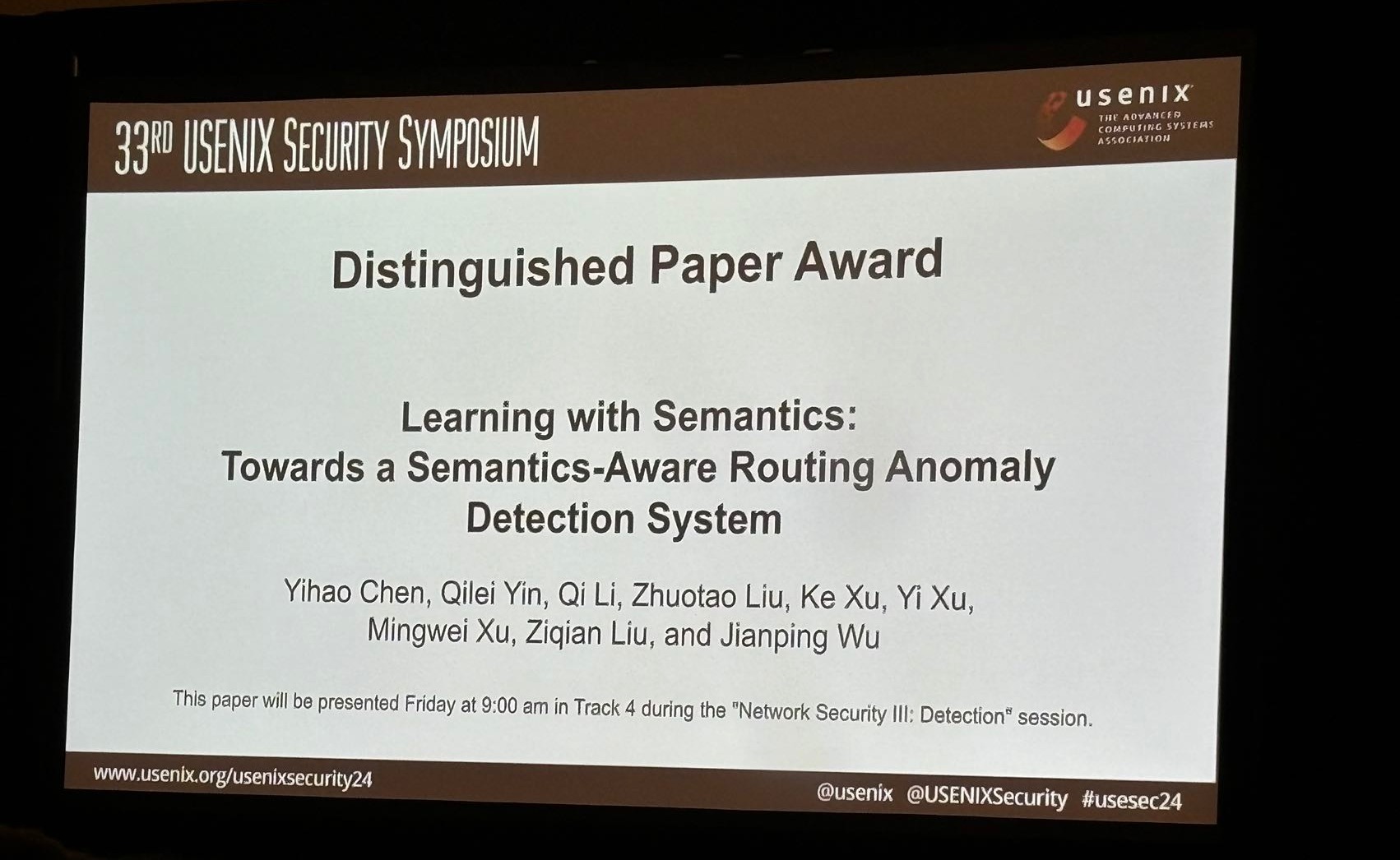 2024.08计算机系和网研院团队获得USENIX Security 2024杰出论文奖和互联网防御奖