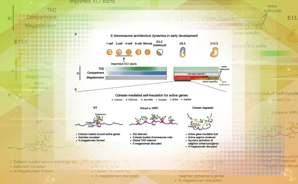 2024.09生命学院颉伟课题组、王海峰课题组合作揭示小鼠胚胎失活X染色体高级结构从头建立过程及其调控机制
